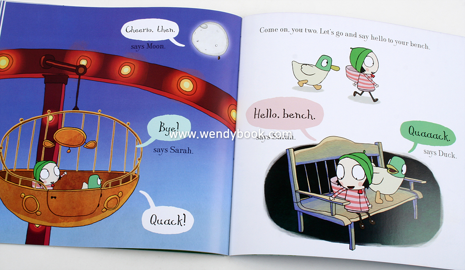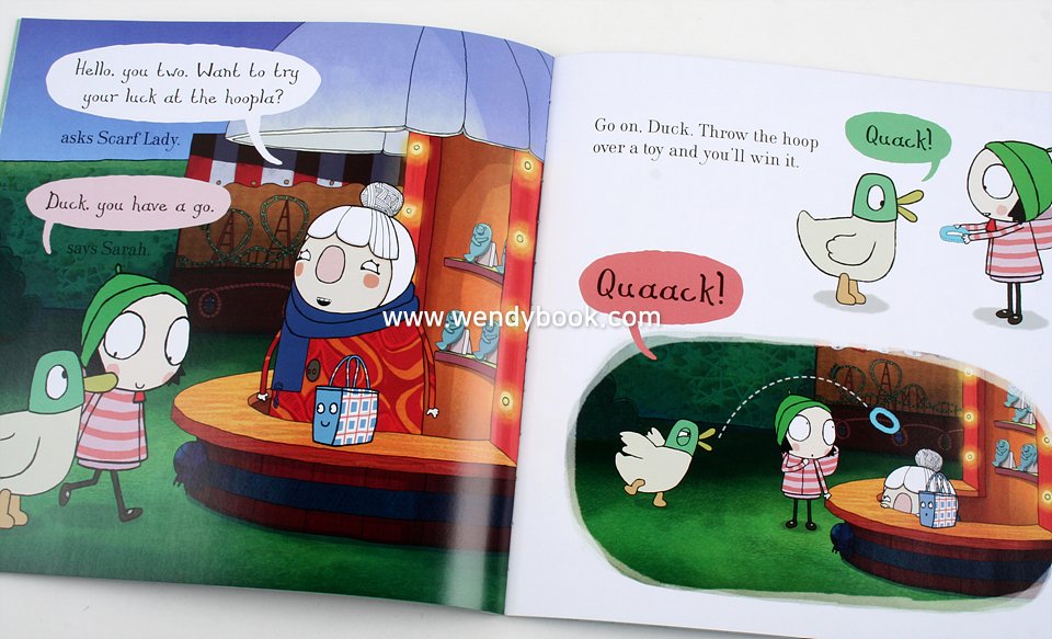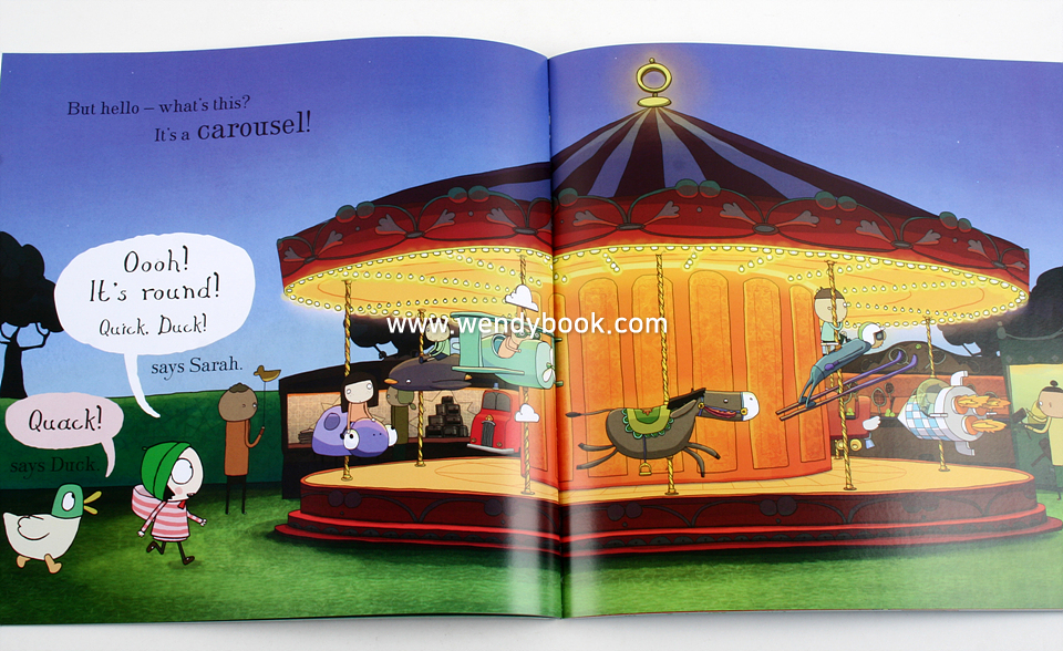Meet Sarah, and Duck! This brilliantly quirky pairing offer an alternative look at the world as they head off on adventures together. This picture book sees them going to a funfair and having a marvellous time!