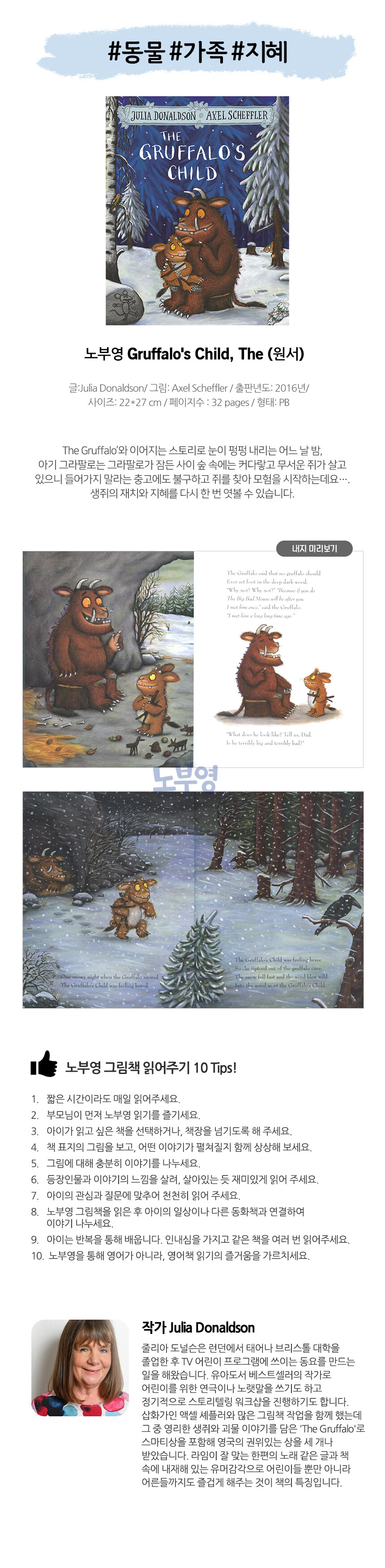 이 작가의 신간 & 인기 도서 작가 Julia Donaldson 전체도서보기 Books and Crooks and Other Plays: For Upper Key Stage Two 25% 12,800 원 The Three Billy Goats Gruff and Other Plays: For Key Stage One 25% 14,300 원 The Trial of Wilf Wolf and other Plays 25% 12,800 원 Charlie Cook's Favourite Book (20th Anniversary Edition) 25% 11,400 원 The Tooth Fairy and the Crocodile 25% 11,400 원 The Gruffalo's Child 25% 11,100 원 Room on the Broom 25% 11,400 원 Happy Birthday Gruffalo! 36% 9,800 원 작가 Axel Scheffler 전체도서보기 Charlie Cook's Favourite Book (20th Anniversary Edition) 25% 11,400 원 National Trust: Ben Plants a Butterfly Garden (QR음원 제공) 25% 11,400 원 The Gruffalo's Child 25% 11,100 원 Room on the Broom 25% 11,400 원 Happy Birthday Gruffalo! 36% 9,800 원 Pip and Posy's Big Book of Words (QR음원 제공) 30% 17,300 원 Axel Scheffler's Treasury of Fairy Tales 25% 21,400 원 The Gruffalo 27% 11,100 원