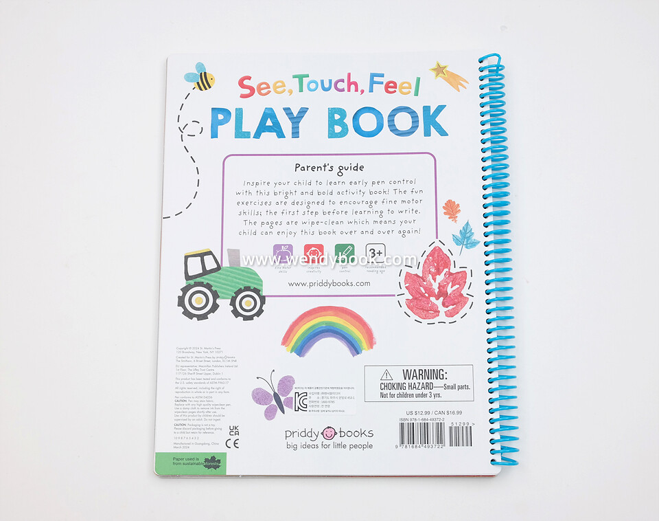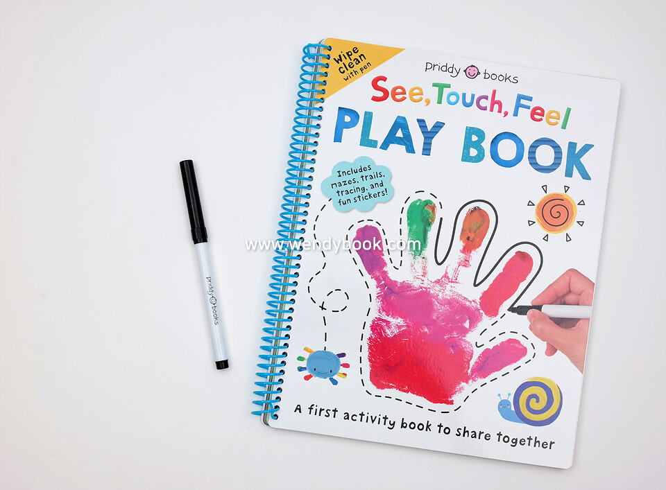 Encourage your preschooler’s early pen control skills with See Touch Feel: Play Book–a wipe-clean activity book from Priddy Books!