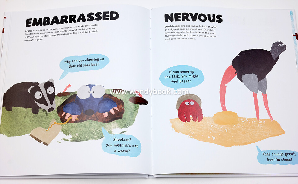 밝고 선명한 색감의 동물 캐릭터들과 감정과 기분, 태도를 이야기해볼까? 무겁지 않게 감정 등의 단어의 느낌을 알수 있고 동물에 대한 재미있는 지식도 솔솔하다.