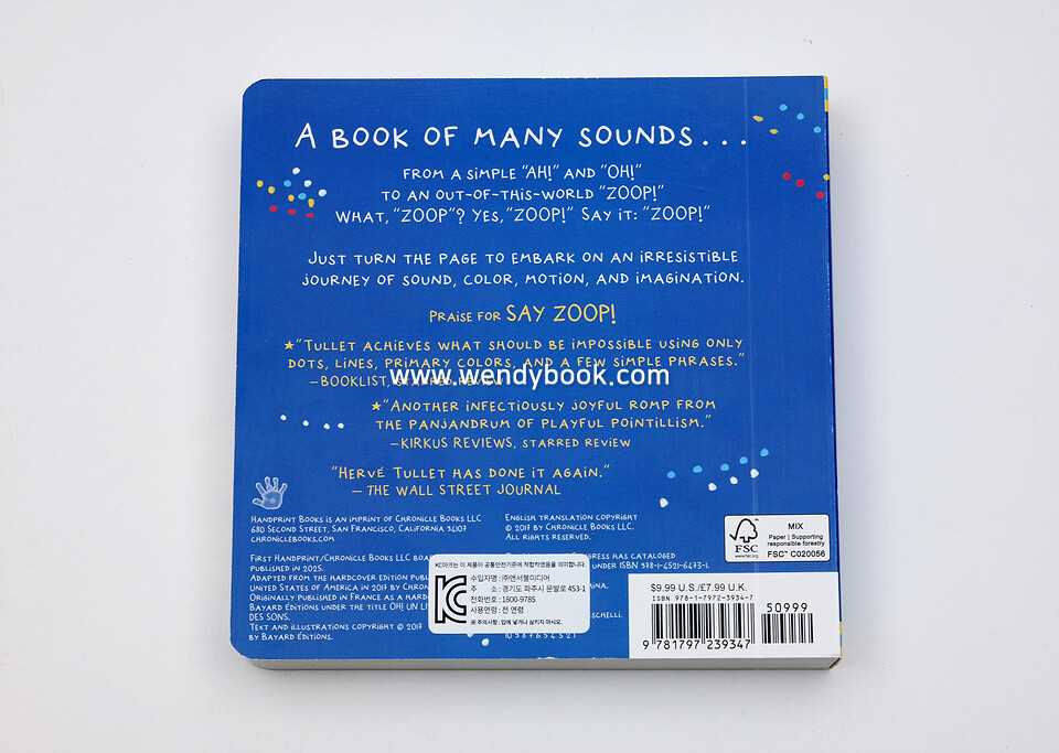 이 작가의 신간 & 인기 도서 작가 Herve Tullet 전체도서보기 Say Zoop! : A Book of Sound 25% 11,300 원 Museum in a Book 35% 24,300 원 Tap Tap Tap! 49% 15,200 원 Hervé Tullet's Art of Play 36% 36,000 원 Draw Here: An Activity Book 25% 16,900 원 Ready, Set, Draw!: A Game of Creativity and Imagination Game 30% 15,700 원 Press Here 49% 6,900 원 Say Zoop! 30% 16,800 원