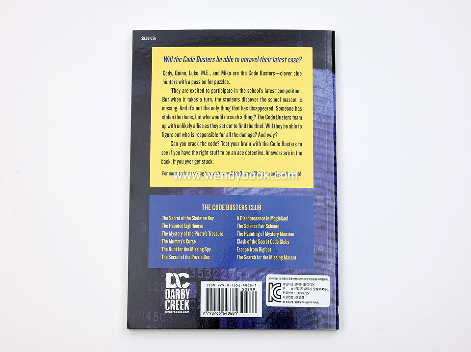 이 작가의 신간 & 인기 도서 작가 Penny Warner 전체도서보기 The Code Busters Club #12: The Search for the Missing Mascot 30% 10,500 원 The Code Busters Club #11: Escape from Bigfoot 25% 11,300 원 The Code Busters Club #7: A Disappearance in Magicland 28% 10,800 원 The Code Busters Club #8: The Science Fair Scheme 28% 10,800 원 The Code Busters Club #10: Clash of the Secret Code Clubs 28% 10,800 원 The Code Busters Club #9: The Haunting of Mystery Mansion 28% 10,800 원 The Code Busters Club #6: The Secret of the Puzzle Box 28% 9,700 원 The Code Busters Club #5: The Hunt for the Missing Spy (큰 판형) 28% 10,800 원