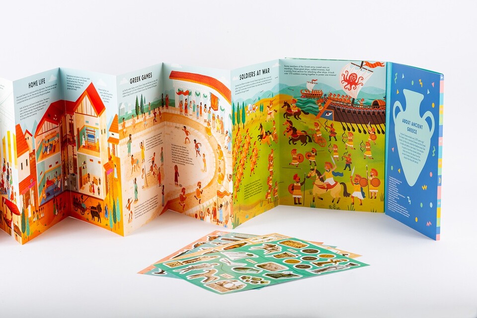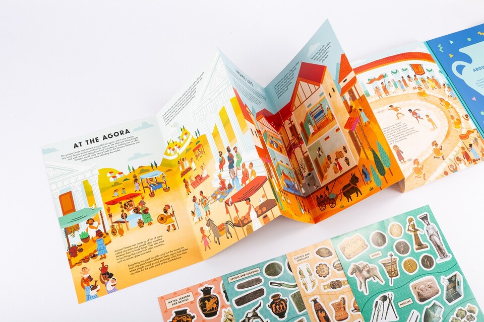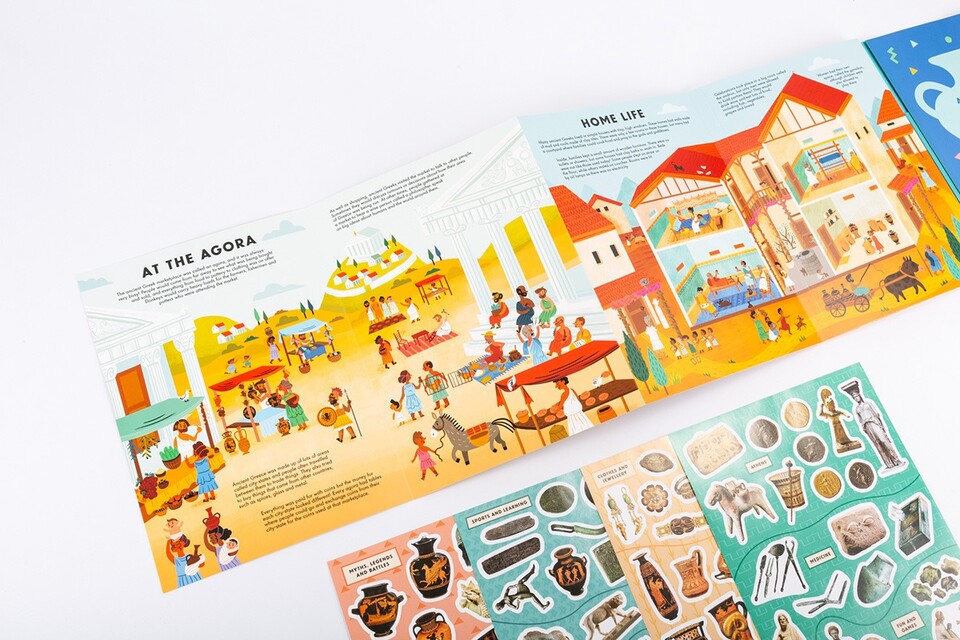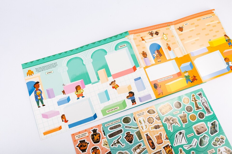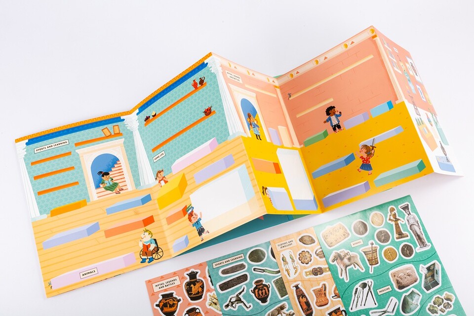 너만의 고대 그리스를 박물관을 꾸며볼 기회! 100개의 스티커와 비어있는 박물관 배경이 들어있다.