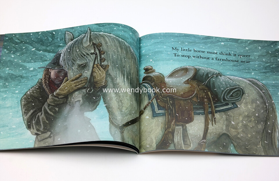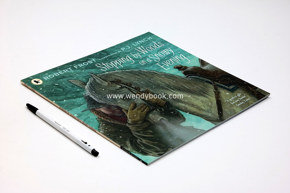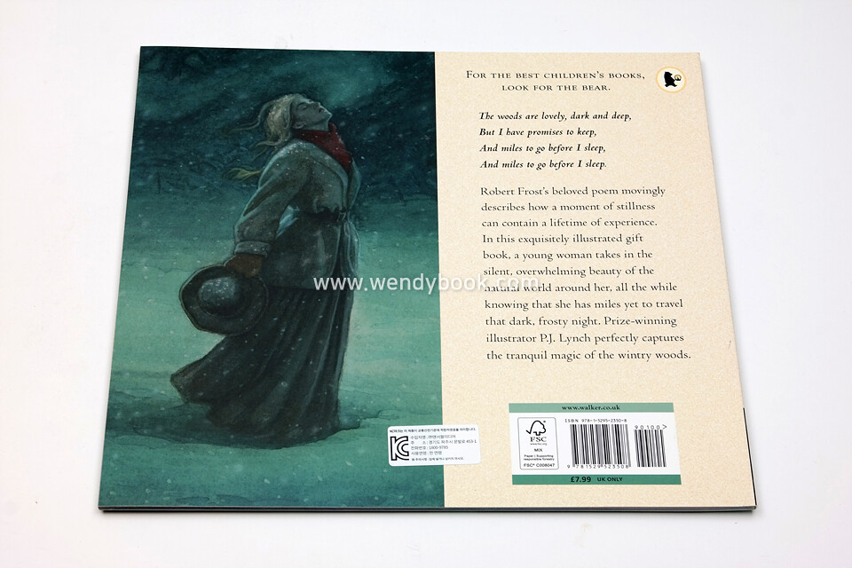 눈 내리는 날에 가장 어울리는 그림책. 로버트 프로스트의 시에 케이트 그리너웨이 2회 수상 작가 P.J. Lynch 그림.
