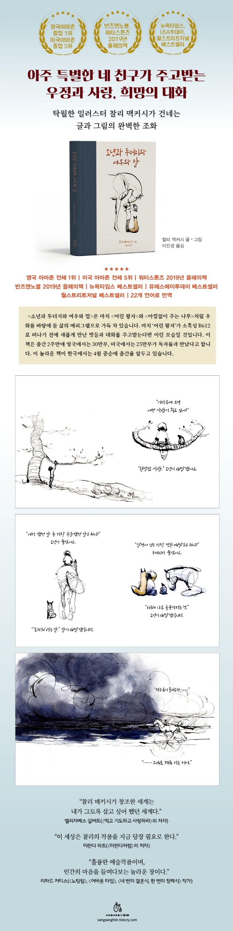 이 책의 저자 찰리 맥커시Charlie Mackesy는 일러스트레이터로 영국의 주간지 〈스펙테이터〉에 그림을 그리고, 옥스퍼드대학 출판부의 표지 디자이너로 일하고 있었습니다.