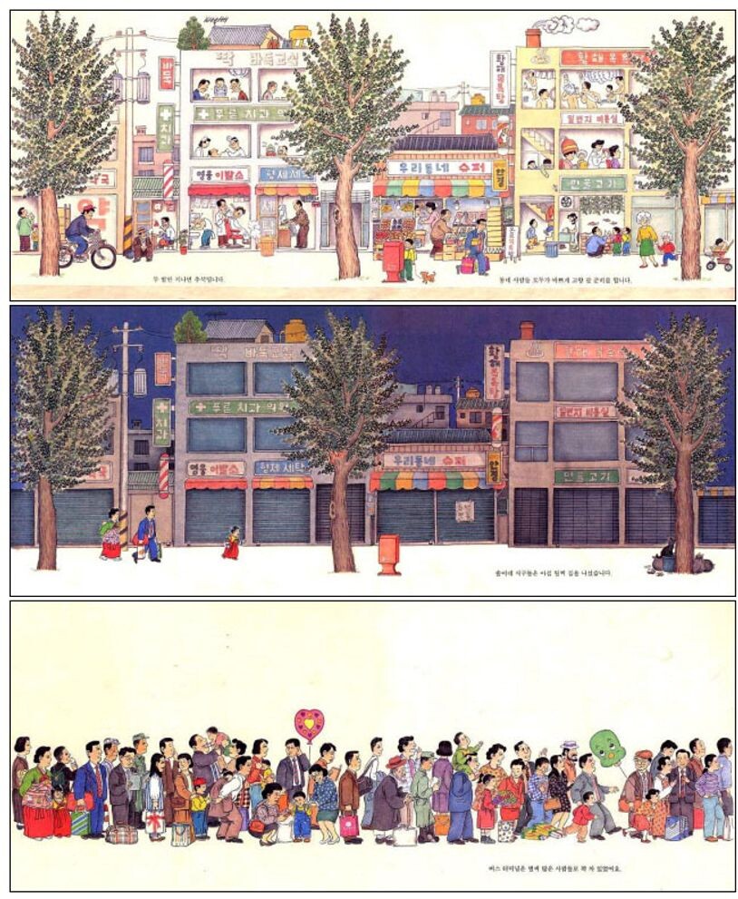 이억배의 『솔이의 추석 이야기』. 해마다 추석이나 설날이 되면 도시는 텅 비어 버리지만, 시골은 가득 채워집니다.