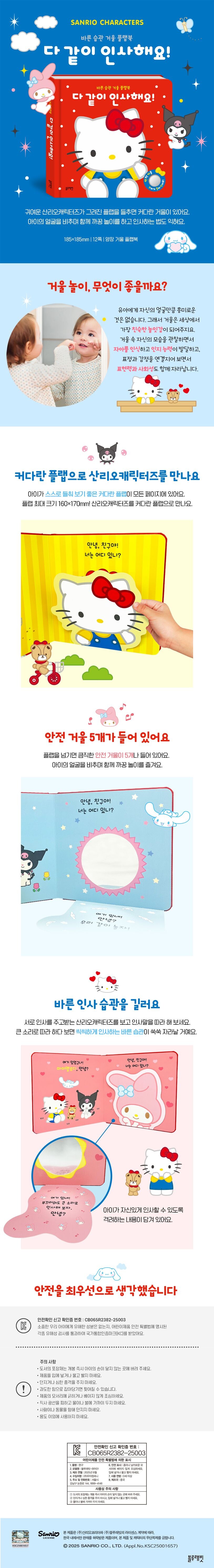 《바른 습관 거울 플랩북 - 다 같이 인사해요!》에는 산리오캐릭터즈 플랩과 안전 거울이 무려 5개씩 들어 있어요.