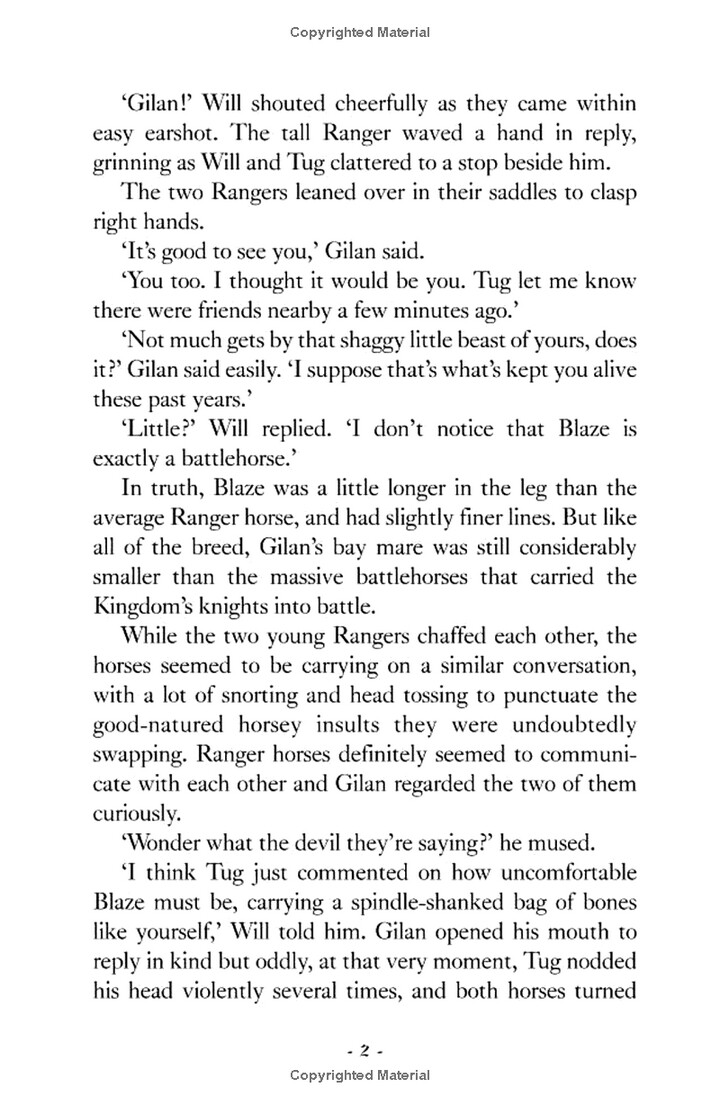 Halt, Will, and Horace set out for Hibernia, where a quasi-religious group, the Outsiders, is sowing confusion and sedition, and they find that secrets from Halt's past may hold the key to restoring order before the last kingdom is undermined. Book #8