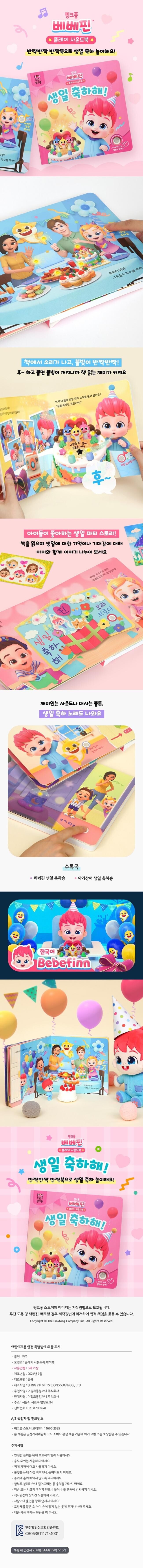 마지막 페이지의 베베핀 생일 파티 장면에서는 함께 생일 축하 노래를 부르며, 후~ 하고 바람을 불어 촛불을 직접 꺼 볼 수 있어요.