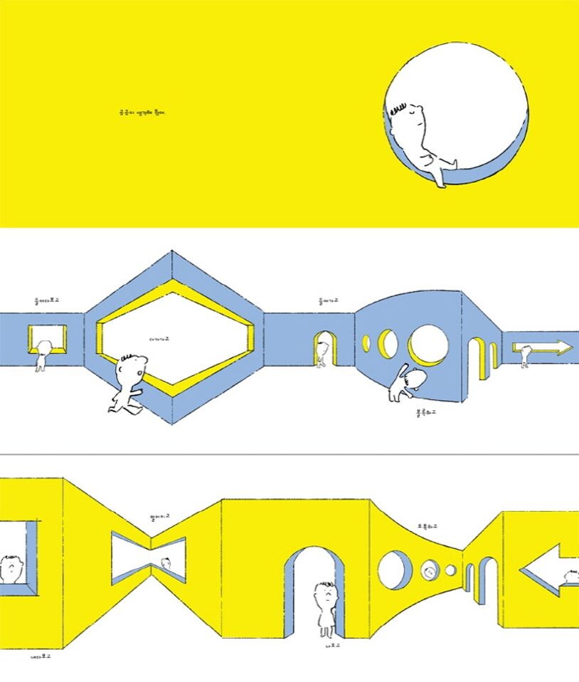 호기심 많은 아이가 벽을 따라가다가 작은 창을 발견한다. 아이는 안을 들여다본 건데, 어느새 밖을 내다보고 있다. 벽을 따라 아이는 더 가까이 다가간 건데, 오히려 더 멀어져 버린다. 이번에는 문 안으로 들어간 건데, 아이는 오히려 밖으로 나와 버린다. 아이는 오른쪽으로 꺾은 거라고 생각했는데, 왼쪽으로 가고 있다. 아이는 작아 보이는 창을 보고, 혹시 큰 게 아닐까? 하고 생각해 본다. 아이는 왜 작은 창을 보고, 큰 거라고 생각한 걸까?