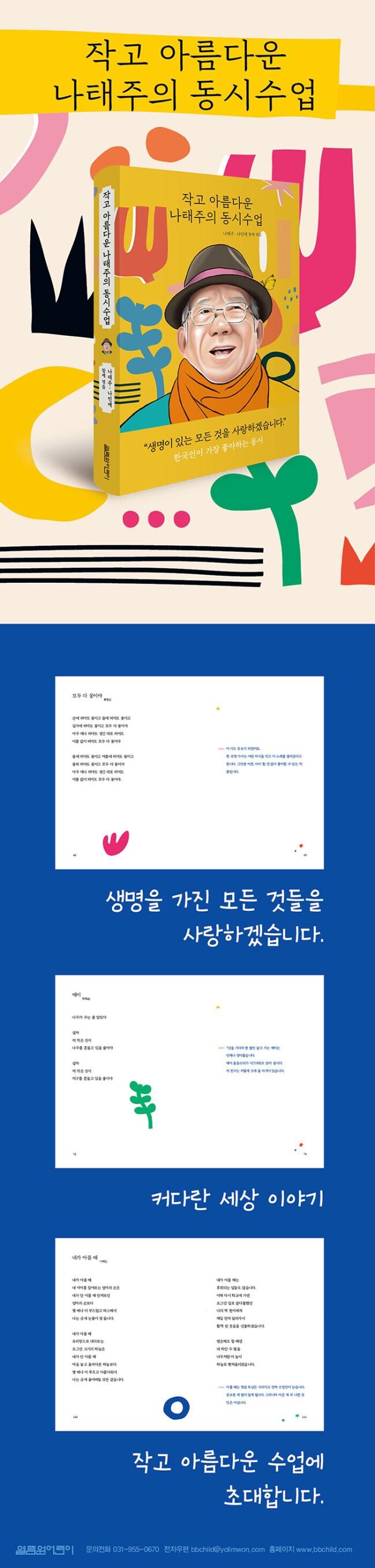 처음에는 이 책, 그냥 우리의 어린 벗들에게 들려주고 싶은 아름다운 동시들만 모아서 만들까 해서 만든 책입니다. 그런데 책을 만드는 과정에서 한 편 한 편의 시에 서울대학교 교수, 나민애 문학평론가의 감상문을 달기로 했습니다. 그래서 책의 이름에 ‘동시 수업’이란 말이 들어갔습니다.