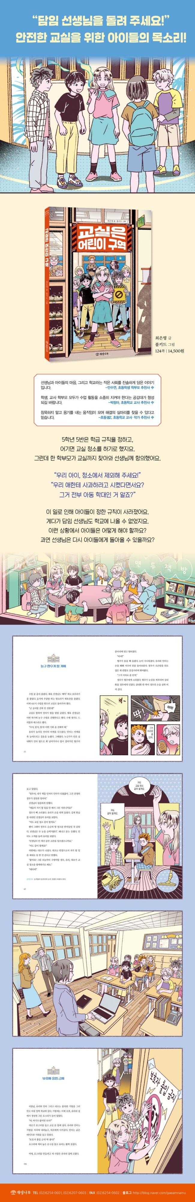 아이들이 생활하는 교실은 그 어떤 곳보다 안전해야 합니다. 그래서 학부모가 교실에서 일어나는 일에 관심을 기울이는 것은 당연하지요. 하지만 교실을 이끌어 가는 주체는 교실에서 생활하는 선생님과 아이들이어야 합니다. 교실의 주인인 아이들이 교실 속 보호자인 선생님과 논의하여 스스로 문제를 해결해 나가는 과정은 아이들에게 더없이 큰 배움의 기회가 될 것입니다. 이 책을 통해 단순히 학습 공간을 넘어, 세상을 살아가며 갖춰야 할 중요한 가치를 배우는 곳이자, 다른 이들과 더불어 살아가는 사회를 경험하는 곳인 학교의 역할을 돌아보길 바랍니다.