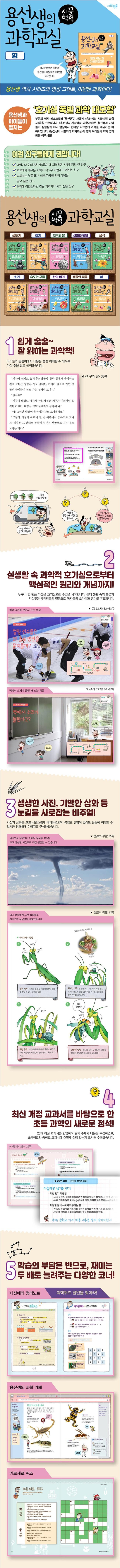 부동의 역사 베스트셀러 ‘용선생’이 새롭게 《용선생의 시끌벅적 과학교실》을 선보입니다. 《용선생의 시끌벅적 과학교실》은 용선생과 아이들이 한바탕 시끄럽게 과학을 배워 가는 이야기입니다. 현재 아이들의 독서 습관을 고려한 쉬운 서술, 생생한 사진과 기발한 삽화로 눈길을 사로잡는 비주얼, 2019년 최신 과학 교과서를 충실히 반영한 내용 구성, 호기심을 북돋우는 소재로 풀어낸 개념과 원리 등 초등학생이 꼭 알아야 할 과학의 모든 것이 담겨 있습니다.