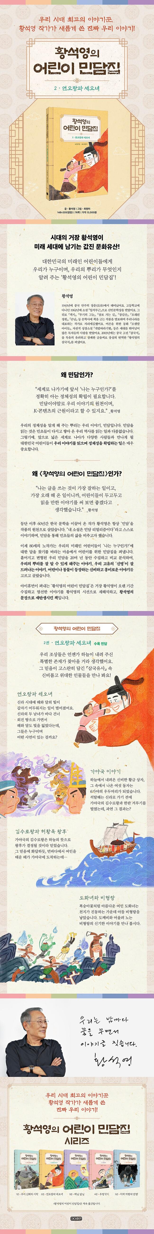 어린이들은 『황석영의 어린이 민담집 2. 연오랑과 세오녀』 속 재미있고 신비로운 옛이야기를 읽으며 우리 조상들의 삶과 정신을 통해 단단한 정체성을 확립할 수 있을 것입니다.