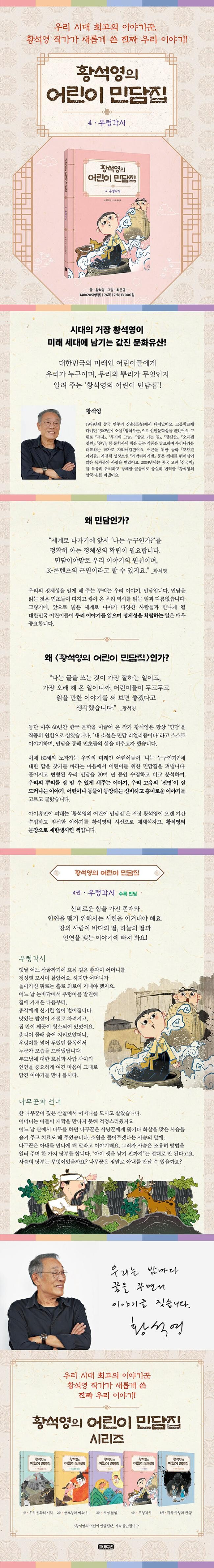 어린이들은 『황석영의 어린이 민담집 4. 나무꾼과 선녀』를 읽으며 재미있고 신비로운 우리 옛이야기를 접하는 한편, 우리 조상들이 이야기에 담아낸 교훈도 마음에 새기게 될 것입니다.
