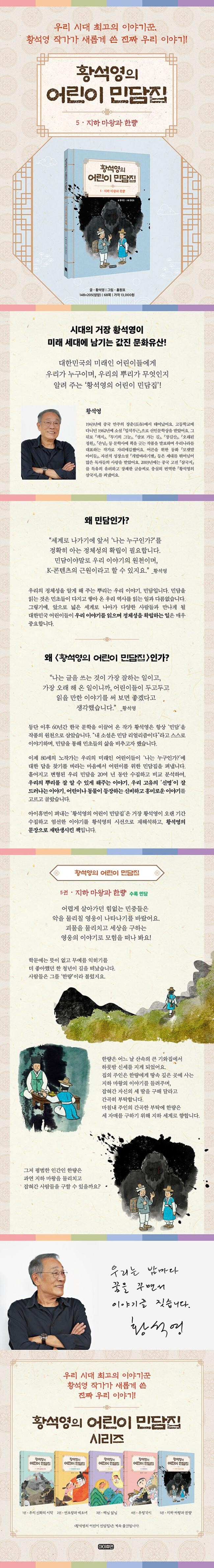 어린이들은 『황석영의 어린이 민담집 5. 지하 마왕과 한량』을 읽으며 힘겨운 삶을 살면서도 희망을 잃지 않고 스스로 운명을 개척하고자 했던 조상들의 용기 있는 삶을 이해하며 단단한 정체성을 확립할 수 있을 것입니다.
