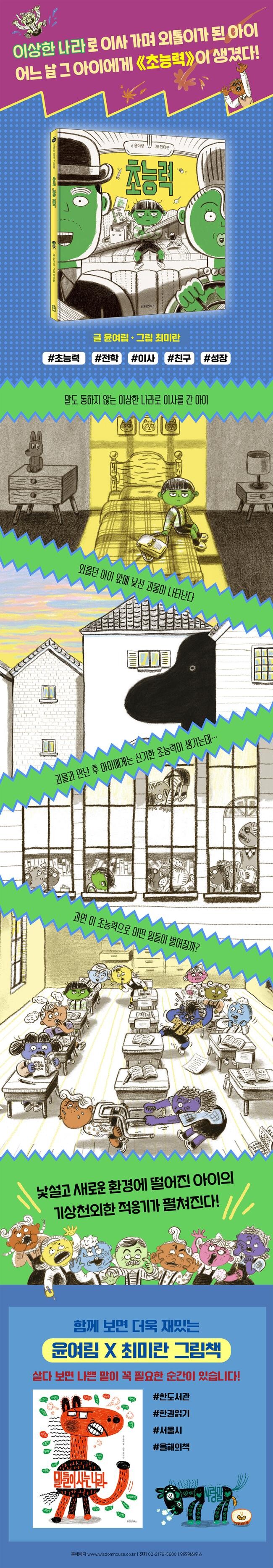 초록 아이의 초능력이 없어졌냐고? 물론 아니다! 여전히 누군가 나쁘게 굴거나 치사하게 굴면 초능력을 발사한다. 물론 심하지 않게! 낯선 나라로 이사를 간 초록 아이처럼 누구나 낯선 상황에 마주하게 된다. 처음에는 낯설고 두렵지만 자신만의 무한 상상 ‘초능력’을 꺼내 조금씩 적응하며 성장하는 것이다.