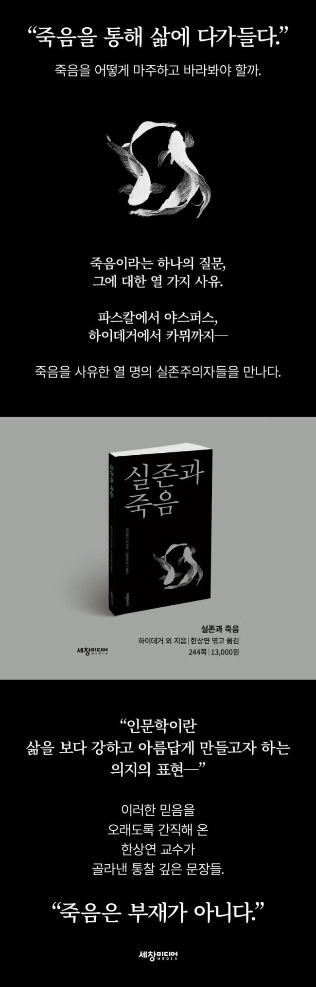 엮고 옮긴이 한상연 교수에 따르면 좁은 의미의 실존주의는 20세기의 철학과 문학에 국한되지만, 니체와 하이데거, 사르트르의 사상을 중심으로 그 이전과 이후의 사상을 살펴보면, 실존주의 사상의 역사는 이미 오래전에 시작되었다고 한다. 이 책을 구성하기 위해 한상연 교수는 실존주의의 역사에서 죽음에 관해 가장 구체적이고 깊이 있는 성찰을 보인 사상가들을 선정하고, 이들 사상가의 저술 가운데 역시 죽음에 관한 가장 구체적이고 깊이 있는 생각을 담은 저술을 선별했다. 그다음으로 각 사상가 특유의 관점이 잘 드러내는 문장들, 특히 사상가들 사이의 철학적 연관성을 파악하는 데 도움이 될 만한 문장들을 선택했다. 이는 실존주의 사상에 대해 잘 모르는 독자들이라고 하더라도 해당 사상가의 텍스트를 이해하는 데 어려움이 없도록 고려한 엮은이의 배려인 셈이다. 그리고 이것은 이 책이 각 사상가들의 통찰을 출발점으로 삼아 독자가 각 실존주의 사상을 입문하게 해 주는 입문서로서도 손색없는 까닭이다. 이 책에서 제시하는 열 명의 실존주의 사상가들의 성찰은 우리가 죽음을 어떻게 바라보고 마주해야 할지 스스로 생각해 볼 계기를 마련해 주고, 이에 대한 우리의 대답은 다시 우리가 스스로 어떻게 살아가야 할지에 대한 물음을 불러올 것이다.
