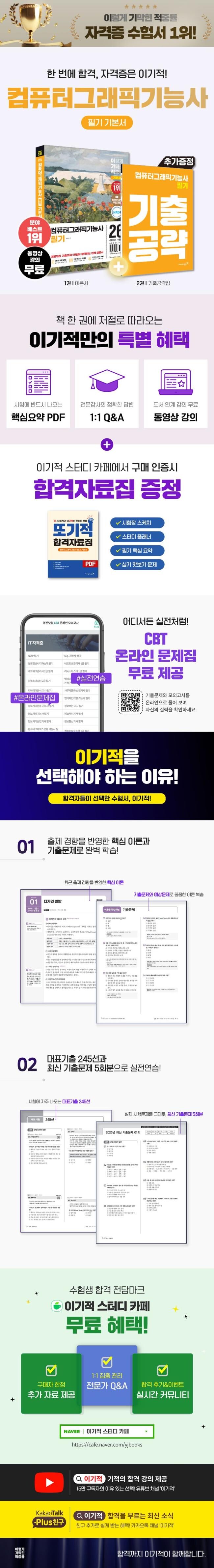 도서 구매 인증을 하신 분께 '또기적 합격자료집' PDF를 무료로 제공합니다. 시험장 스케치와 스터디 플래너, 필기 핵심 요약과 실기 맛보기 모의고사 등 다양한 추가 학습 콘텐츠가 준비되어 있으니, 이기적 스터디 카페(cafe.naver.com/yjbooks)에서 도서 구매내역을 인증하고 더 많은 추가 자료를 받아가세요!