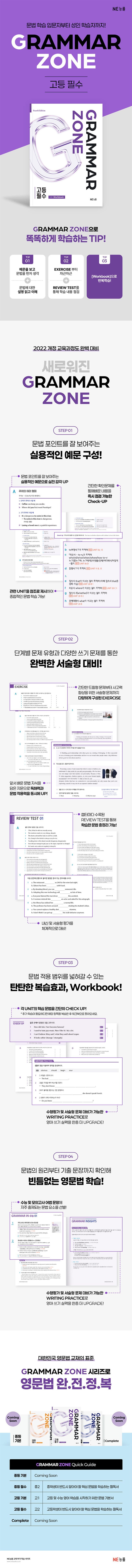 왜 예문이 문법 설명보다 먼저 제시되어 있을까요? 맥락이 있는 예문을 통해 학습자는 문법 규칙을 스스로 찾아낼 수 있어 이해도 잘 되고 기억에도 오래 남습니다. 문법 설명이 먼저 제시되어 있으면, 학습자는 수동적으로 문법 규칙을 암기하려고 합니다. 즉, 예문을 보고 어떤 규칙이 있는지 생각해 본 후, 옆의 설명을 읽으면 『Grammar Zone』의 학습 효과를 극대화할 수 있습니다. 복습할 때는 설명을 먼저 읽어도 좋고, 설명만 한 번 더 읽으며 개념을 정리할 수도 있습니다.