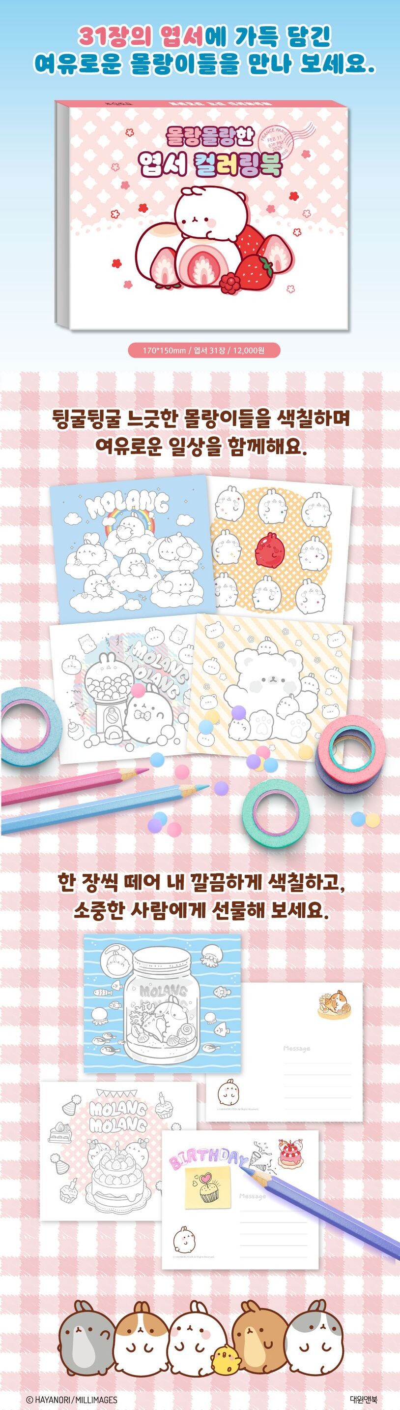 찹쌀떡처럼 동글동글한 귀여운 토끼 '몰랑'! 뒹굴뒹굴 느긋한 몰랑이들을 색칠하며 복잡한 생각에서 벗어나 나만의 시간에 빠져 보세요!