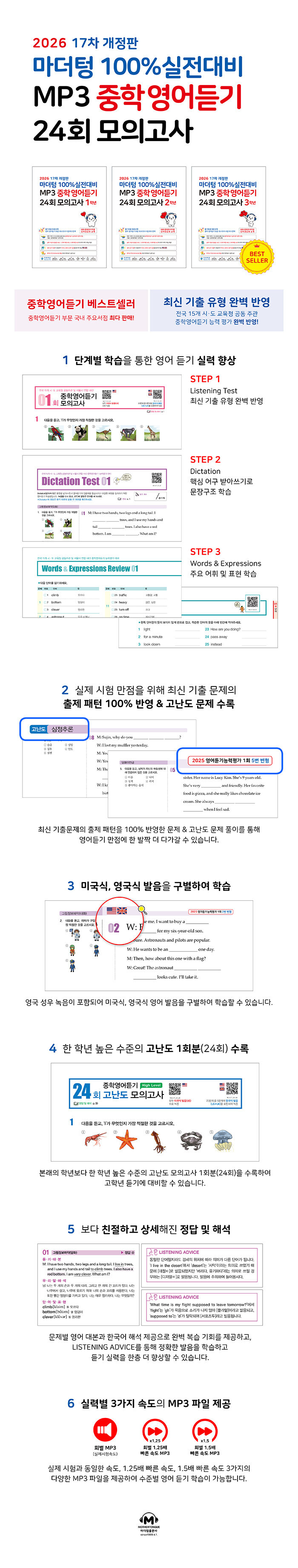 • 마더텅 100% 실전대비 MP3 중학영어듣기 24회 모의고사 3학년 (2026년)