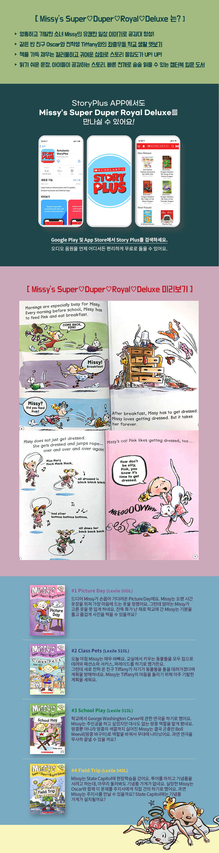 Missy's Super Duper Royal Deluxe 시리즈는 이제 막 독립 읽기를 시작한 아이들을 대상으로 하는 Scholastic의 early chapter book line인 Branches에 속하는 책입니다.