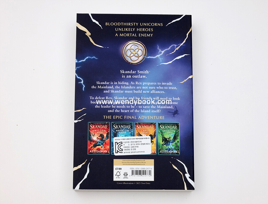 이 작가의 신간 & 인기 도서 작가 A.F. Steadman 전체도서보기 Skandar #5: Skandar and the Spirit War 25% 12,000 원 Skandar #3: Skandar and the Chaos Trials 25% 12,400 원 Skandar #4: Skandar and the Skeleton Curse 25% 12,400 원 Skandar #1: Skandar and the Unicorn Thief 25% 11,300 원 Skandar 시리즈 페이퍼백 4종 세트 30% 44,100 원