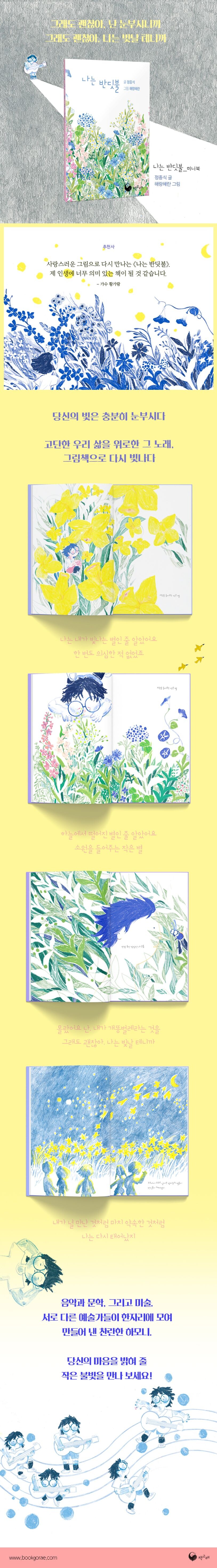 〈나는 반딧불〉의 따뜻한 감동이 그림책으로 찾아옵니다. 《나는나는나는》, 《계절이 하는 말》 등 섬세하고 아름다운 그림으로 독자들의 마음을 두드렸던 김혜란 작가가 〈나는 반딧불〉에 담긴 이야기를 시각적 언어로 새롭게 풀어냈습니다. 현대적인 감성을 담으면서도 난해하지 않은 그림, 무엇보다 눈이 자꾸 머물게 되는 그림으로 화면을 가득 채웠습니다. 그림책을 펼치는 순간 독자는 반딧불의 빛을 따라 이야기에 깊이 빠져들게 됩니다.