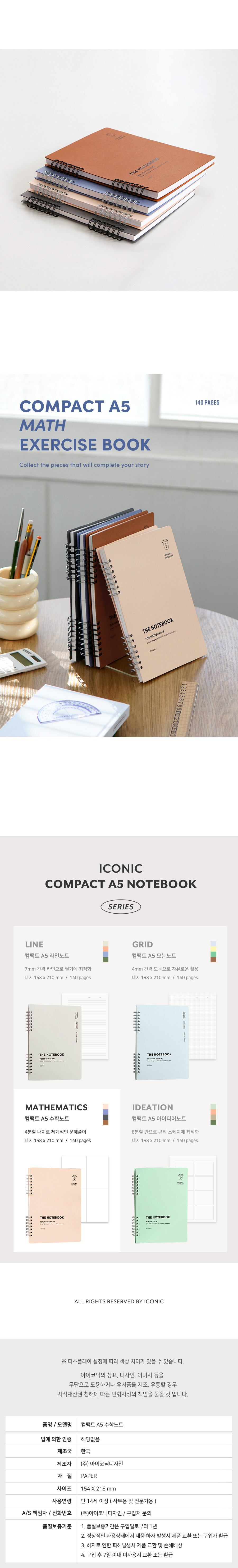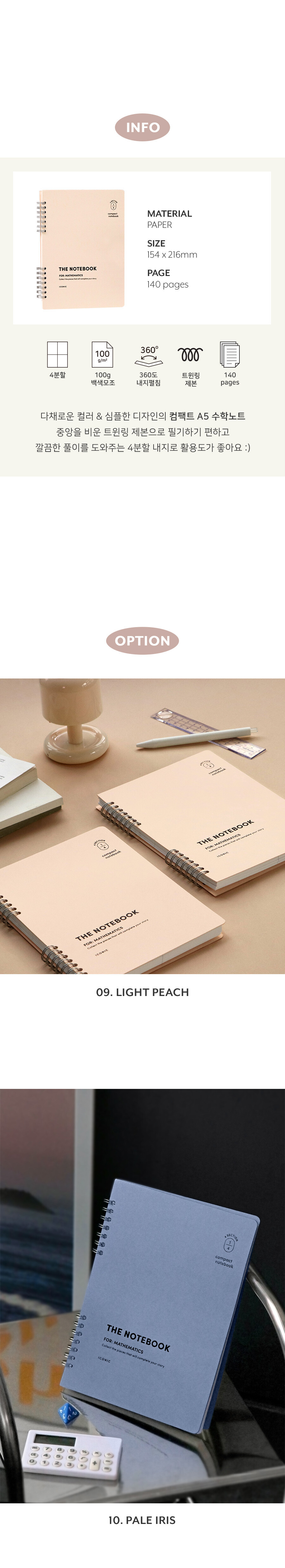 컴팩트 A5 수학노트 4분할 연습장 [페일 아이리스] 문구