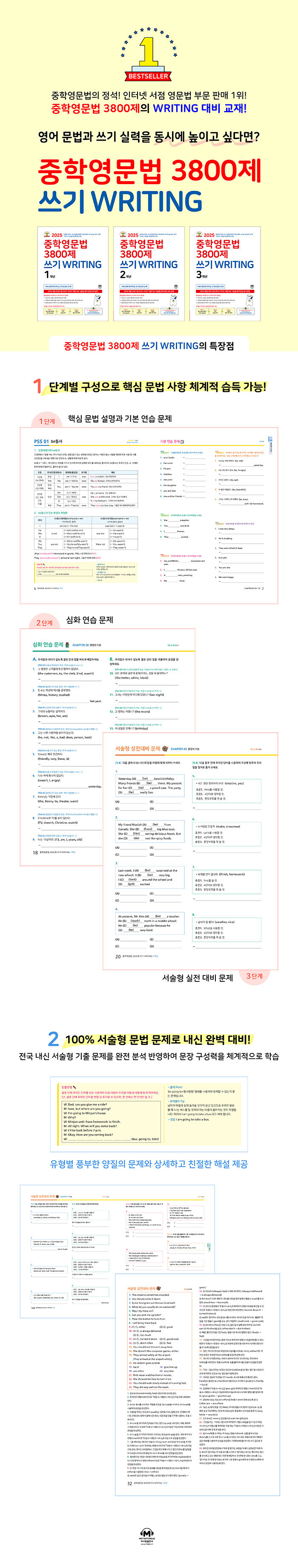 영문법 판매 1위, 중학영문법 3800제의 Writing 대비 교재