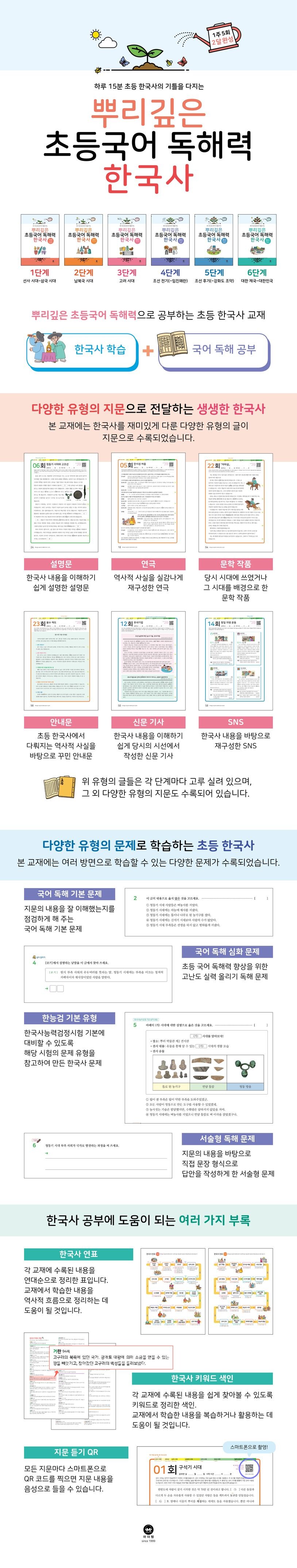 다양한 유형의 지문과 다양한 유형의 문제들이 수록된 〈뿌리깊은 초등국어 독해력 한국사〉 교재로 어렵고 낯선 한국사 이야기를 재미있고 효과적으로 학습하세요.