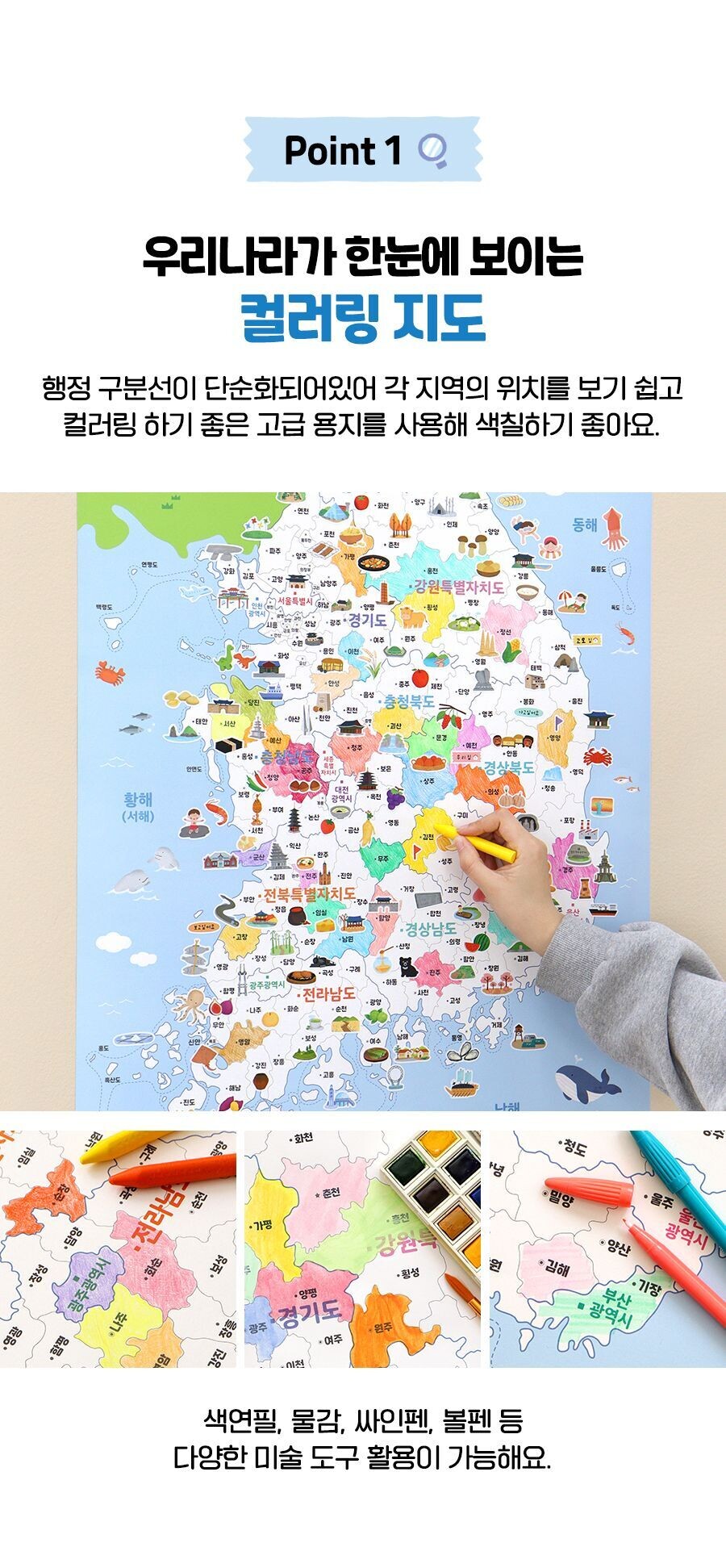 (색칠하기 지도 스티커8장 우리나라 교육 여행)