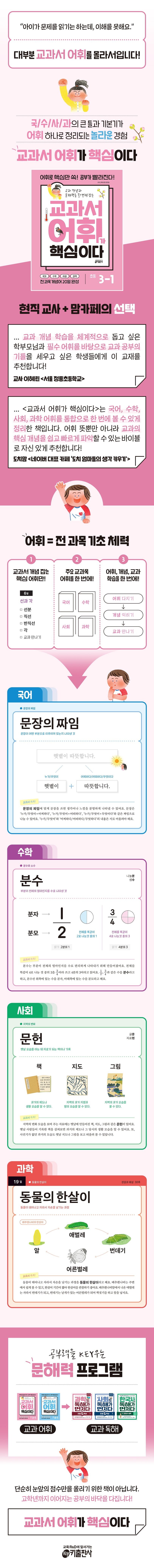 교과서 어휘는 각 교과의 개념을 이해하는 기본 바탕입니다. 교과서 어휘를 모르면 글의 흐름을 따라가기 힘들어 국어, 수학, 사회, 과학 등 주요 교과의 핵심을 놓치게 됩니다.