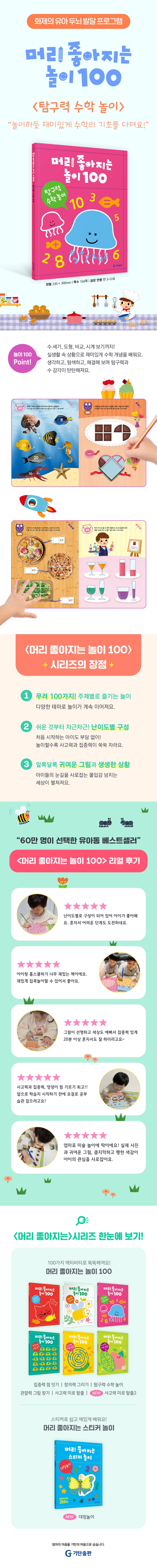 『머리가 좋아지는 놀이 100: 탐구력 수학 놀이』는 집중력, 사고력, 관찰력을 골고루 기를 뿐만 아니라 수학적 개념을 튼튼히 하고, 상상력과 창의력도 키울 수 있는 책이다.