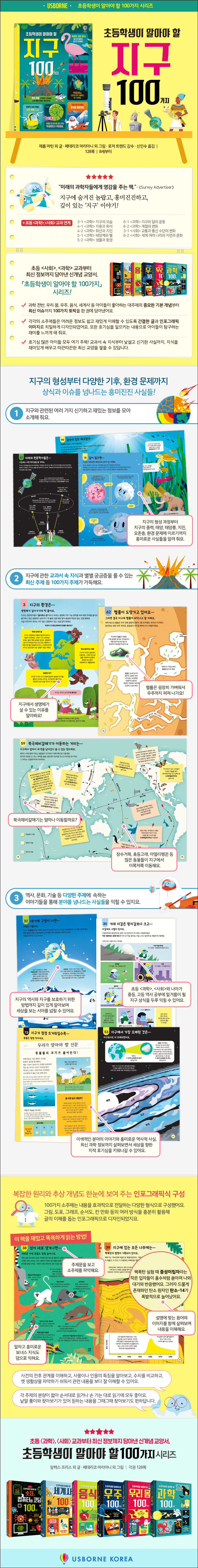 한편, 100가지 이야기는 순서대로 읽어도 좋고, 손이 닿는 대로 읽어도 좋도록 2분의 1쪽에서 2쪽에 이르는 짧은 분량으로 실었어요. 부록으로 몇몇 지역들을 살펴보며 배운 내용을 정리하고 확인할 수 있고, 지구를 보호하기 위해 꼭 알아야 할 10가지도 알 수 있어요. ‘낱말 풀이’와 ‘찾아보기’가 있어 원하는 내용을 그때그때 찾아보기에도 좋답니다.