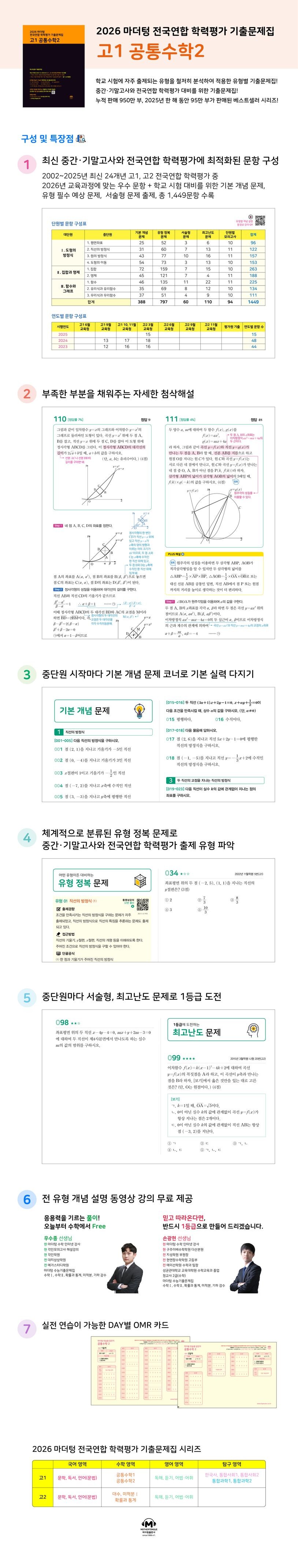 • [현재상품] 마더텅 전국연합 학력평가 기출문제집 고1 공통수학2(2026)
