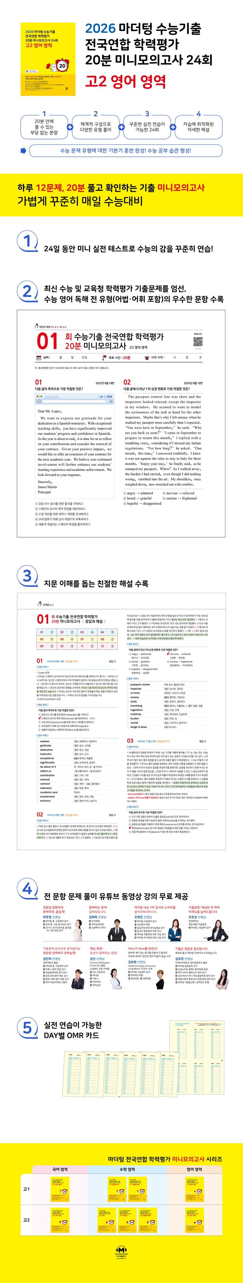 • [현재상품] 마더텅 수능기출 전국연합 학력평가 20분 미니모의고사 24회 고2 영어 영역(2026)