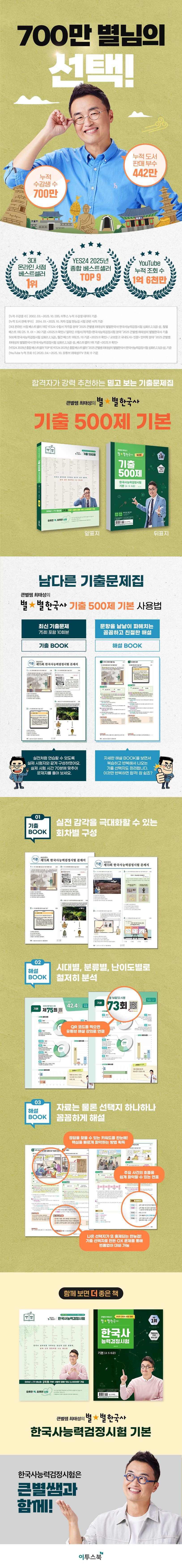 〈큰별쌤 최태성의 별별한국사 기출 500제 한국사능력검정시험 기본(4,5,6급)〉은 수험생의 편의를 위해 〈기출 BOOK〉과 〈해설 BOOK〉 두 권으로 분리되어 있습니다.