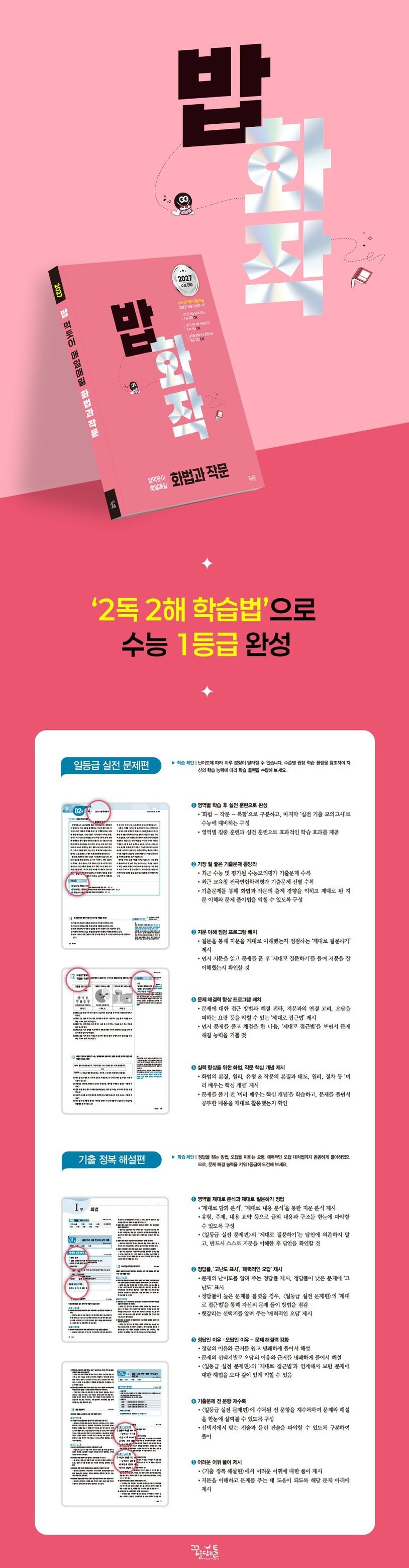 · ‘화법-작문-복합’으로 구분하고, 마지막 ‘실전 기출 모의고사’로 수능에 대비하는 구성