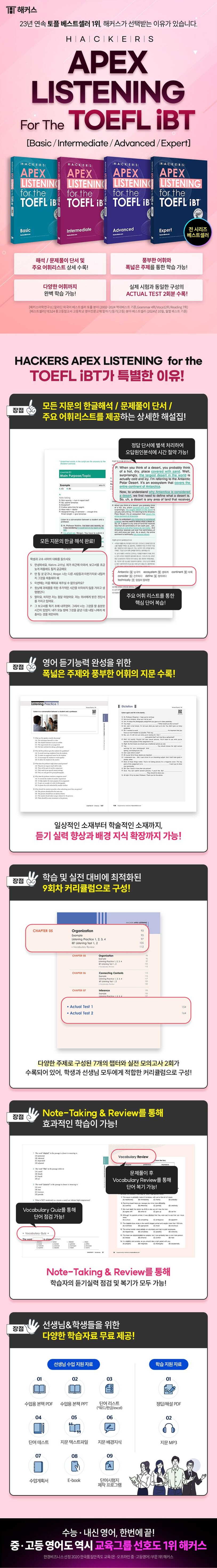 압도적 1위 해커스가 출간한 『HACKERS APEX LISTENING for the TOEFL iBT』, 중고등 영어도 역시 1위 해커스입니다.”