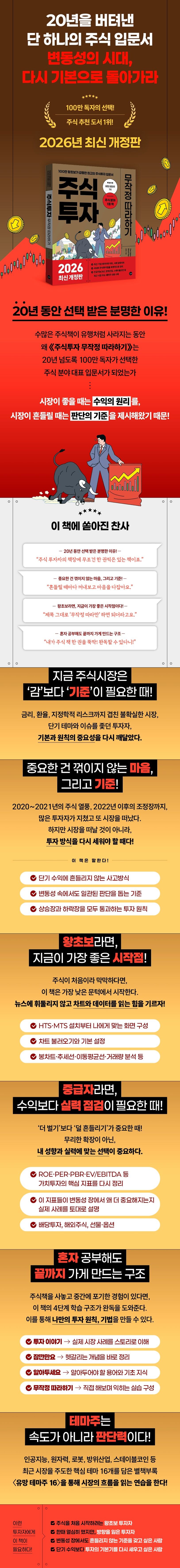 이번 개정판은 바로 이러한 시장 환경을 반영해, 지금 같은 불확실한 장에서 개인투자자가 무엇을 점검해야 할지 알려준다.