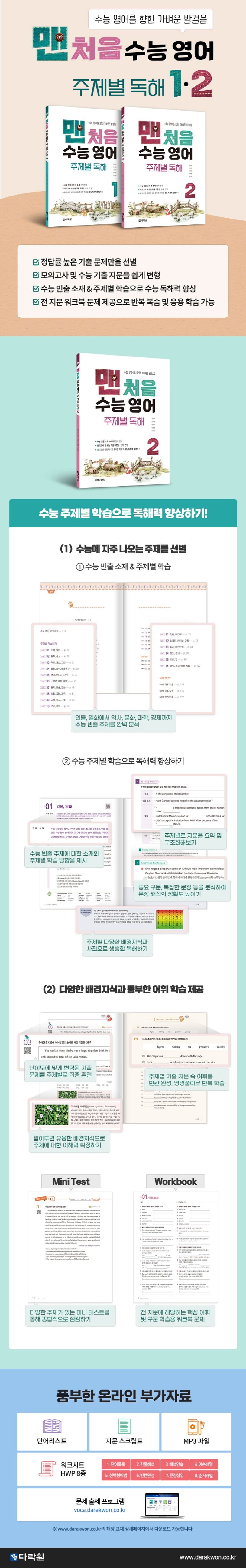 전 지문에 해당하는 핵심 어휘 및 구문 학습용 워크북 문제를 제공합니다. 워크북 정답은 .darakwon에서 무료로 다운로드 할 수 있습니다.
