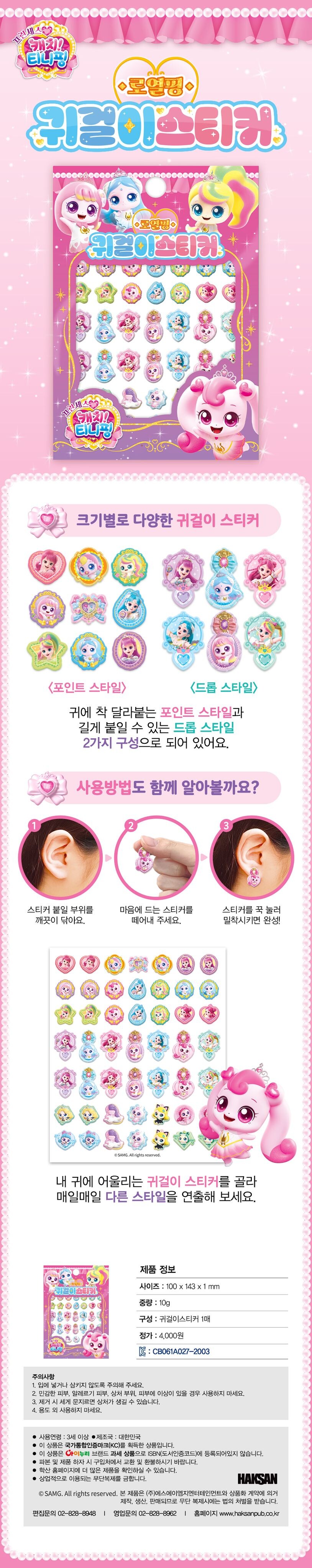 둘째, 작지만 알찬 구성! 1매 안에 다양한 크기의 귀걸이 스티커가 들어있어 아이들이 좋아하는 스티커를 고를 수 있어요!