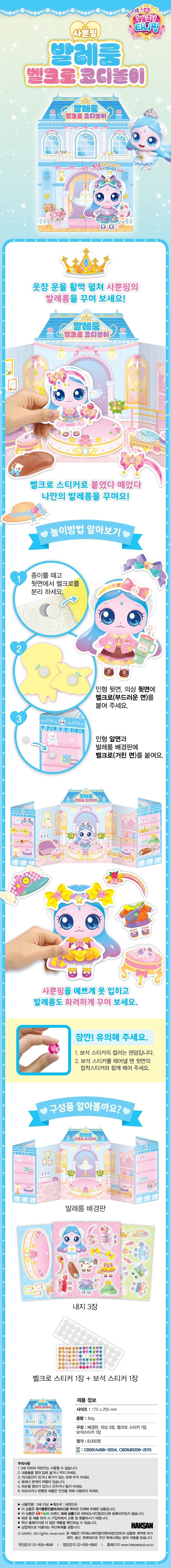 배경판, 의상 3매, 벨크로 스티커 1장, 보석 스티커 1장