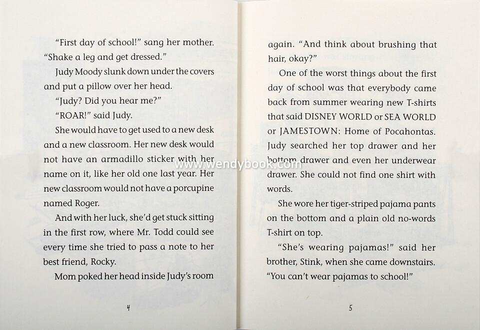 Judy의 성장과정에 따라 변해가는 소녀의 마음을 함께 느껴보는 재미는 마치 우리 아이들에게 거울을 보는 것 같은 느낌마저 줍니다. 천방지축 오르락 내리락 하는 기분파이지만 언제나 긍정적인 자세와 뛰어난 관찰력 덕분인지 위기의 상황에서 문제의 해결고리를 찾아내는 데는 또 탁월하답니다. 풍부한 상상력과 기상천외한 해결방법이 웃음을 자아내는 덕에 아이들의 영원한 베스트셀러 Judy Moody입니다. 시리즈가 이어지면서 어린 주디가 학년이 올라가면서 조금씩 성장하는 모습을 지켜보는 재미 또한 솔솔합니다^^