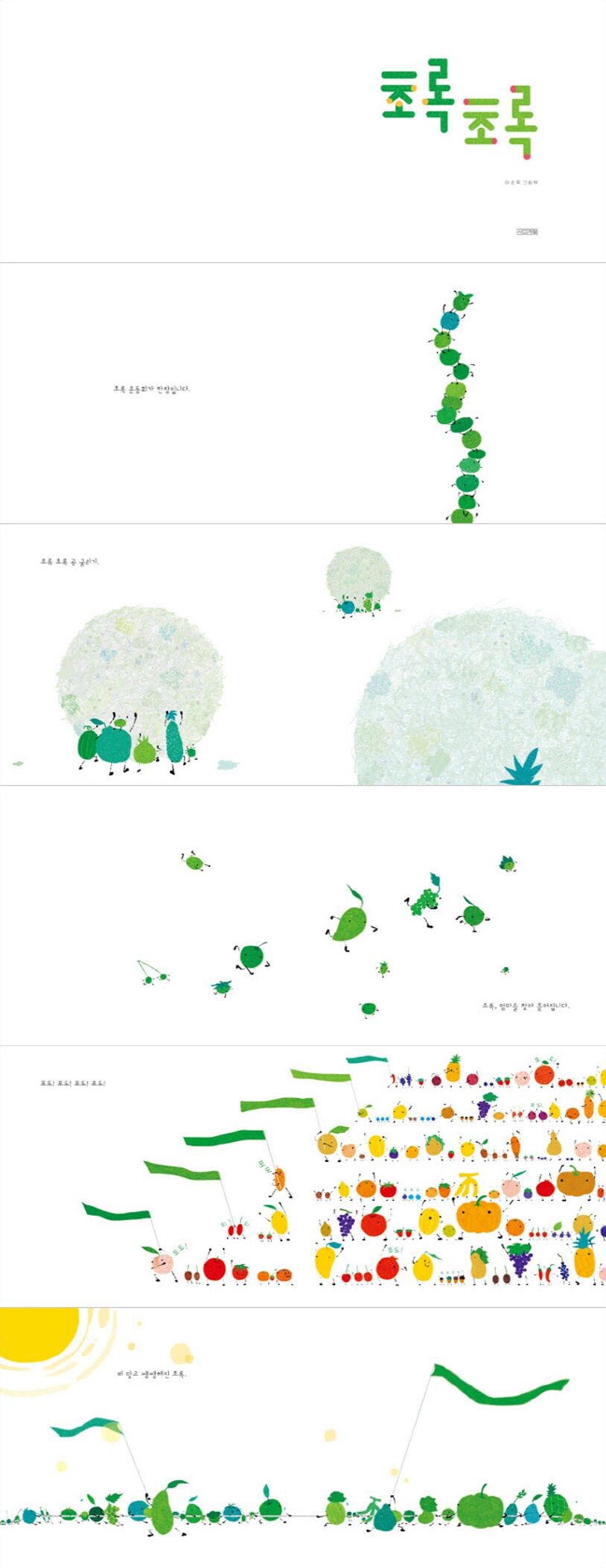 엄마와 함께 달리기 위해 출발한 초록들은 각자 저마다 예쁜 색을 지닌 열매와 손을 맞잡고 나타난다.