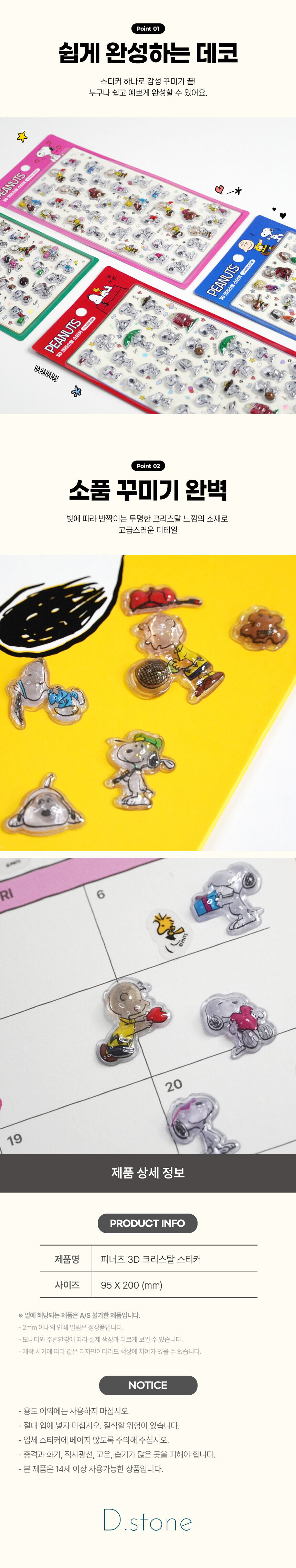 • [현재상품] 3D크리스탈 스티커 봉봉드롭 스누피 [스누피와 친구들]