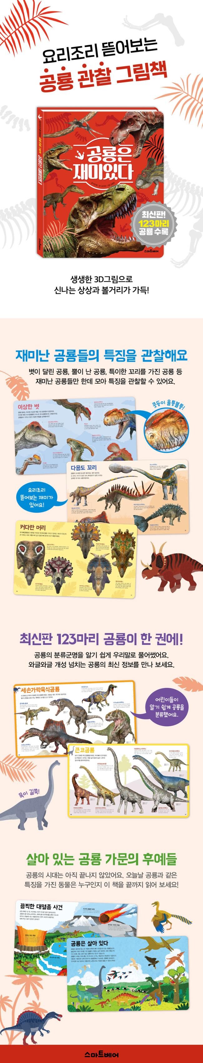 마치 눈앞에 살아 있는 듯 생생한 3D 그래픽은 아이들의 상상력과 호기심을 자극합니다. 재미난 공룡의 모습들을 여러 각도에서 조명한 입체적인 3D 그래픽과 감각적인 일러스트는 아이들을 신비한 공룡 세계로 이끌어 줍니다.