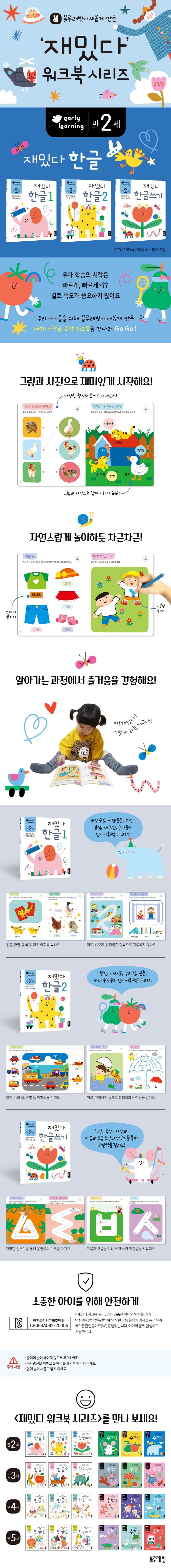 <재밌다 워크북 시리즈>는 소중한 아이의 안전을 위해 어린이제품안전특별법에 명시된 각종 유해성 검사를 통과하여 국가통합인증마크(KC)를 받았습니다. 아이와 함께 안심하고 사용하세요.